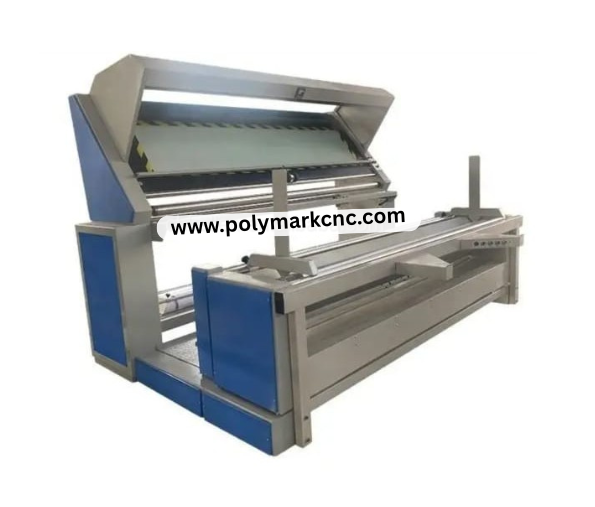The machine works by unrolling the fabric from a roll and rewinding it on another roll while being monitored by the operator or automated sensors: